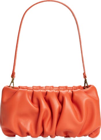 Supple ruched and pleated leather creates a relaxed silhouette on a scaled-down bag with of-the-moment appeal. Carry it as a clutch or clip on the detachable strap for over-the-shoulder carry.
