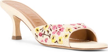 A squared-off toe and tapered heel balance a versatile slide sandal that will complement your polished looks.