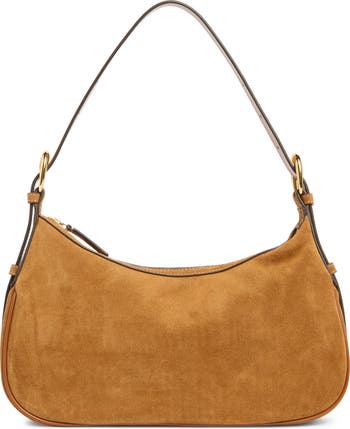 A '90s-inspired profile and textured leather distinguish a structured shoulder bag fitted with an adjustable strap perfect for on-the-go styling.