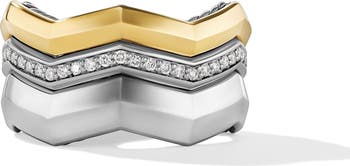 Polished sterling silver, dazzling diamonds and gleaming 18-karat gold make this stacked ring in a zigzag design an everyday showstopper.