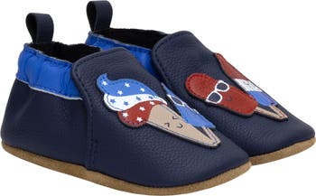 This adorable appliquéd crib shoe is designed for a roomy, comfortable fit with a wide toe box that provides extra space for feet to grow and move freely. The slip-resistant suede sole is ultraflexible, promoting a full range of motion and healthy foot development.