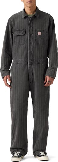 Chalky pinstripes on faded-black cotton denim enhance the old-favorite comfort of coveralls made with plenty of pockets for tools and other essentials for going about your day. The roomy fit layers easily over other clothes and features a generous cut in the legs to give you room to move.