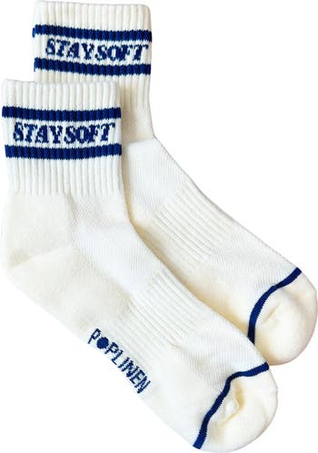 - Featuring athletic ribbing for a snug fit and a playful reminder to "stay soft" in a world that can sometimes be tough, these socks are as earth-friendly as they are cute. Step into a little warmth, style, and positivity—your feet will thank you.