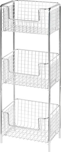 Steel Freestanding 3-Tier Storage Organizer Tower with Baskets - Chrome