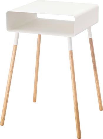 Boasting a slim, minimalist design that thrives in tight spaces, this steel-topped side table features an airy cutout perfect for storage and displays.