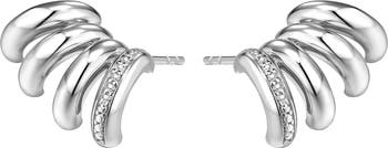 These Ear Climber Earrings by DPT Antwerp offer the illusion of layered piercings with four sleek bands and 5 shimmering diamonds. Crafted in Sterling silver, they deliver contemporary impact with classic charm.