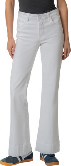 A white wash brings sophisticated style to stretchy, full-length flare jeans made with Fab Ab front shaping pockets that mold and hold.