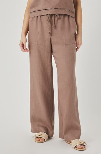 Lilts of lacy details sweeten summery pull-on pants made from lightweight linen.