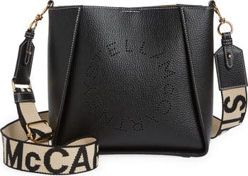 The perforated Stella logo centers the front of this scaled-down crossbody bag made of the label's high-quality faux leather and finished with a webbing strap.