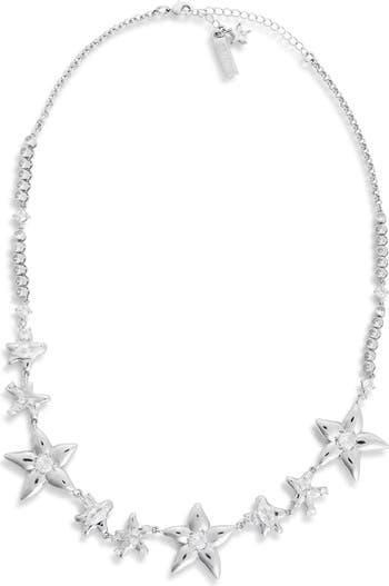 Bring noteworthy shine and sparkle to your neckline with this frontal necklace featuring organically shaped stars prong-set with cubic zirconia.