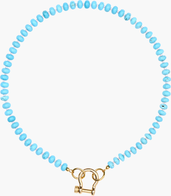 17 inch turquoise necklace with 14 karat gold plated hardware and carabiner. Perfect for any occasion.