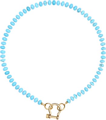 17 inch turquoise necklace with 14 karat gold plated hardware and carabiner. Perfect for any occasion.