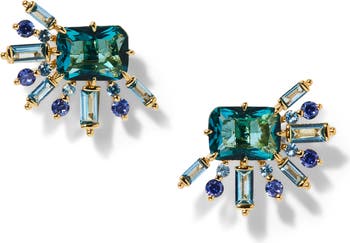 A myriad of crystals in various shapes and colors bursts with brilliance on these hand-polished stud earrings.