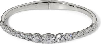 A mix of cubic zirconia create a work of sparkling art on this occasion-worthy hinge bracelet.