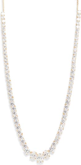 Simply dazzle in this stunning collar necklace adorned with prong-set round cubic zirconia and three center oval crystals that light up from every angle.