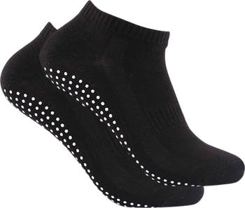 Cotton-blend ankle socks with silicone grippers keep you surefooted on slippery surfaces.