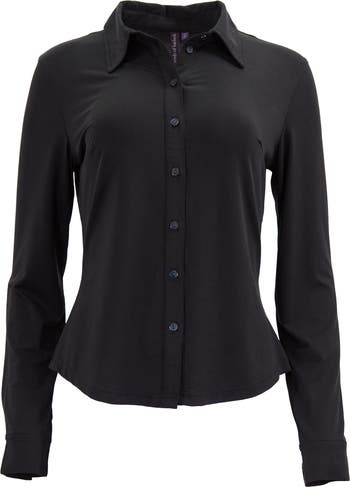 A classic silhouette, reimagined in a luxuriously soft knit. Designed with a relaxed yet polished look, it features a button front and fluid drape that moves with you. Dress it up for the office, layer it under a blazer, or wear it untucked for a laid-back feel. This shirt brings effortless versatility to any wardrobe.