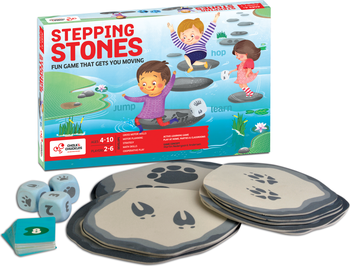 This kit offers multiple game play options. Don't touch the floor! Includes 12 stepping stones, 45 number cards, 3 dice, and activity guide.