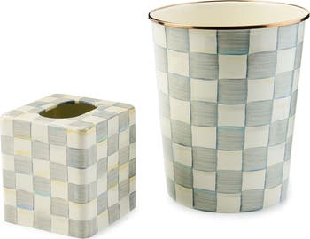 Give your bathroom essentials a cheery makeover with these matching waste bin and tissue box cover made from heavy-gauge, hand-glazed steel and hand painted in the brand's Sterling Check pattern.