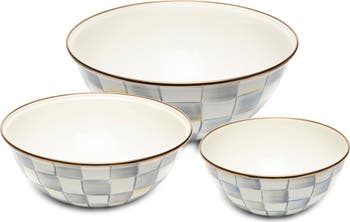Sterling Check Enameled Set of 3 Mixing Bowls