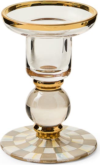 Sterling Check Small Glass Candleholder