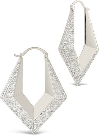 Cubic zirconia pavé lights up the beveled edges of these geometric hoop earrings.