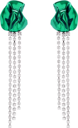 Strands of sparkling crystals enhance the statement-making style of these elegantly handcrafted and artfully folded drop earrings.