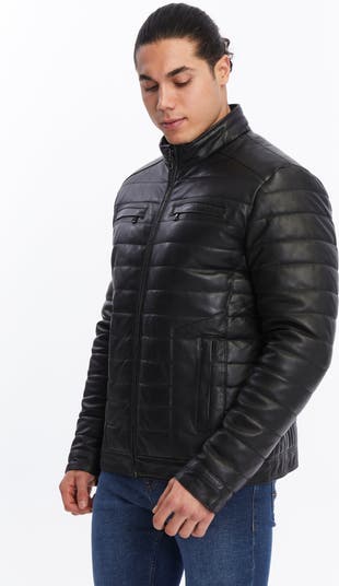 Made from 100% premium British sheepskin leather, this men's quilted puffer jacket is carefully handcrafted for a clean, tailored look that wears well season after season. The padded, quilted construction adds insulation without sacrificing polish, while the high stand collar zips up to help block the chill. Designed with everyday function in mind, it features a secure front zipper closure plus multiple chest and side pockets to keep essentials close. Long sleeves and precise stitching create a streamlined silhouette that pairs easily with jeans or trousers. A timeless leather jacket with modern puffer styling, built for lasting value, comfort and cold-weather versatility.