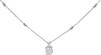 Sterling Silver 1.00 Cttw Lab Grown Diamond Oval Halo Pendant Bezel Station Necklace