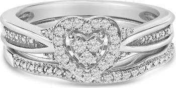 Sterling Silver 1/5 Cttw Diamond Heart Motif Bridal Set