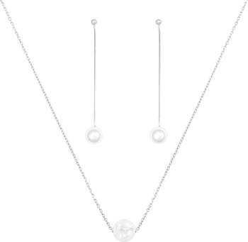 Sterling Silver 18k Gold Plated Abby Single Cultured Pearl Necklace & Dangled Drop Earrings Set Holiday Gift Guide