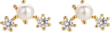 Sterling Silver 18k Gold Plated Dawn Pearl Stud Earrings Trendy Minimal