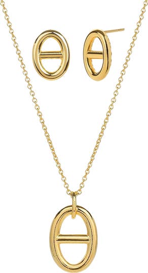 Sterling Silver 18k Gold Plated Erin Circle Necklace & Earring Set Dainty