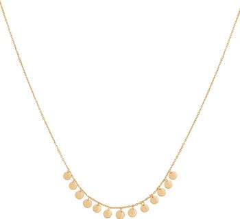 A thin chain features a line of small-sized sparkling sequins in the middle. You can use this necklace to jazz up your outfits for a dressier occasion or wear it on its own for a little dramatic flair.