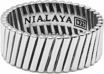Handcrafted 925 sterling silver band with a sleek rhodium finish and distinct linear texture—modern, durable and designed for effortless everyday wear.