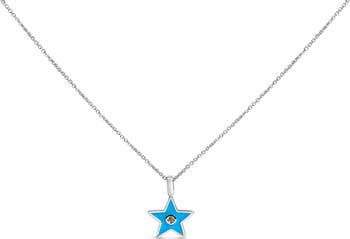 Sterling Silver Blue Enamel and Diamond Accent Star Pendant Necklace