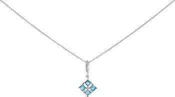 Sterling Silver Blue Topaz and White Sapphire Square Motif Pendant Necklace 18 Inch