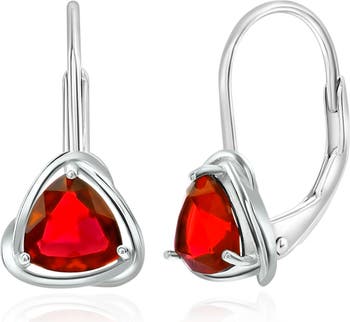 Add a touch of elegance and color to your outfit with these sterling silver lever-back earrings. Featuring a 6MM created ruby stone and a 12MM triangle drop, they are both stylish and nickel-free. Perfect for any occasion!