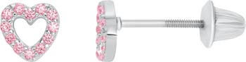 Start their accessory collection early with this heart-shaped set of sterling silver stud earrings alight with twinkling cubic zirconia stones. The threaded post and safety-bell clutch make them safe for the tiniest of trendsetters.