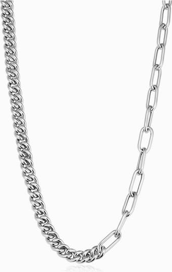 A classic curb link meets a modern paperclip link to create this stunning necklace. Held together with an oval connector clasp, wear it with the connector at the center to highlight your favorite charms, or in the back to show off the intricate chain. Either way, you're sure to have a look that will turn heads.