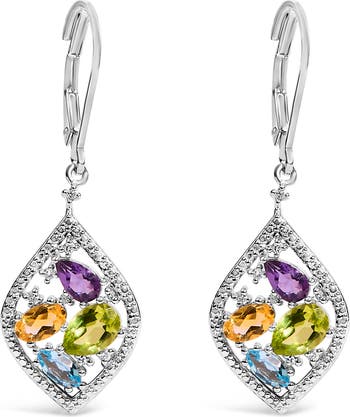 Sterling Silver Diamond Accent Multi Stone Rhombus Drop Earrings