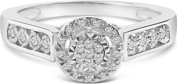 Sterling Silver Diamond Accent Round Cluster Halo Ring