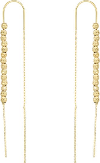 Whether going to an office, on a weekend getaway, or on a night out with friends- these Dorica Chain Bead Drop Earrings go pretty well with an everyday look. Fashioned in 925 sterling silver metal, it flawlessly showcases a drop chain threader design embellished with round beads- all set in a glossy yet lustrous body finish. It can be worn in different ways- let it wrap around the second piercing or dangle freely. These elegant earrings come in gold, silver, and gold/silver/rose gold mix tones- so pick your favorite one to complement other jewelry pieces. Wear it alone for a classic look, or accent it with formal, informal, and luxurious party wear. Further, you can gift this beauty to your friends, family, and dear ones on their special day.