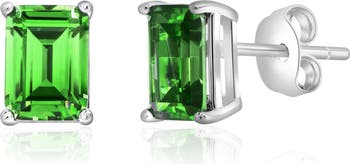 Discover the timeless beauty of our Sterling Silver Emerald Cut Studs. Crafted from solid sterling silver, these studs shimmer with a created emerald stone measuring 7x5. Easily secure them with butterfly backings stamped with .925. Elevate any look with these stunning studs.