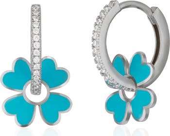 Sterling Silver Enamel Clover Earrings - Turquoise