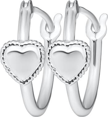 Hand-polished sterling silver shapes these heart-detailed hoop earrings specially designed for baby.