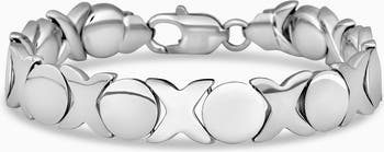 This 7.5-inch X-O bracelet is crafted in sterling silver and designed with alternating smooth “O” circles and sculpted “X” links for a playful yet polished look. It feels bold enough to stand alone, but still refined enough to pair with your everyday stack. Shiny, modern, and full of personality—it's the perfect bracelet to wear or gift.