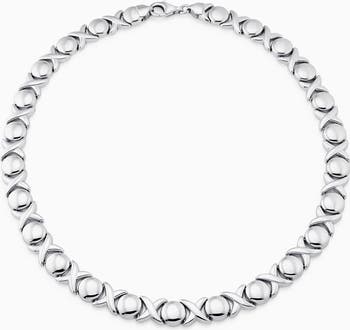 This 17-inch X-O necklace is crafted in sterling silver and features alternating smooth “O” links and sculpted “X” shapes for a playful yet polished look. The rounded, high-shine design lays beautifully along the neckline, giving the piece a bold but refined presence. Wear it solo for standout shine or pair it with the matching bracelet for a coordinated moment.