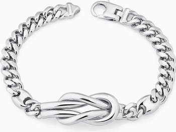 Bold Cuban links meet a soft, sculptural twist. This sterling silver bracelet measures 7.25 inches and features a smooth, high-shine knot at the center—adding a little meaning and a lot of style to a classic chain. It’s effortless, modern, and totally stack-friendly, but strong enough to stand out all on its own.