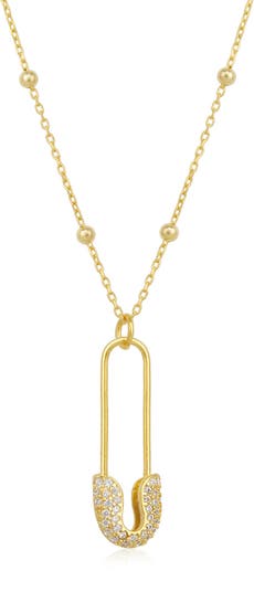Show your alliance with refugees regardless of race, religion, and gender by wearing this fascinating Jewelled Safety Pin Necklace. Designed in 925 sterling silver, it highlights a vertical safety pin pendant accented with pave sparkling cubic zirconias, giving you a ritz and glitz look. It has an adjustable yet delicate linking chain so adjust it to your desired length for a stylish statement look. This safety pin necklace comes in lustrous silver and gold tones, complementing your casual, friend’s gathering, holiday, and vacation outfits. Pair it with sterling silver safety pin earrings, minimal rings, and elegant bracelets for a sophisticated look. Moreover, you can gift this meaningful necklace to those who love to style these jewelry pieces.